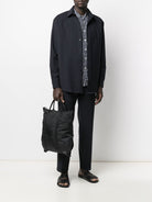 This sleek black nylon tote features a spacious interior and durable construction, making it perfect for daily commutes, weekend getaways, or gym sessions. The lightweight nylon material ensures easy portability while maintaining a polished, minimalist aesthetic.