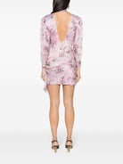 LIGHT PINK/MULTICOLOUR SILK SNAKESKIN PRINT WRAP DESIGN KEYHOLE NECK SIDE ZIP FASTENING THREE-QUARTER LENGTH PUFF SLEEVES OPEN BACK DRAPED DETAILING AT THE HIP RUCHED SKIRT STRAIGHT HEM ABOVE-KNEE LENGTH