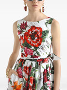 FLOWER-PRINT SLEEVELESS POPLIN DRESS