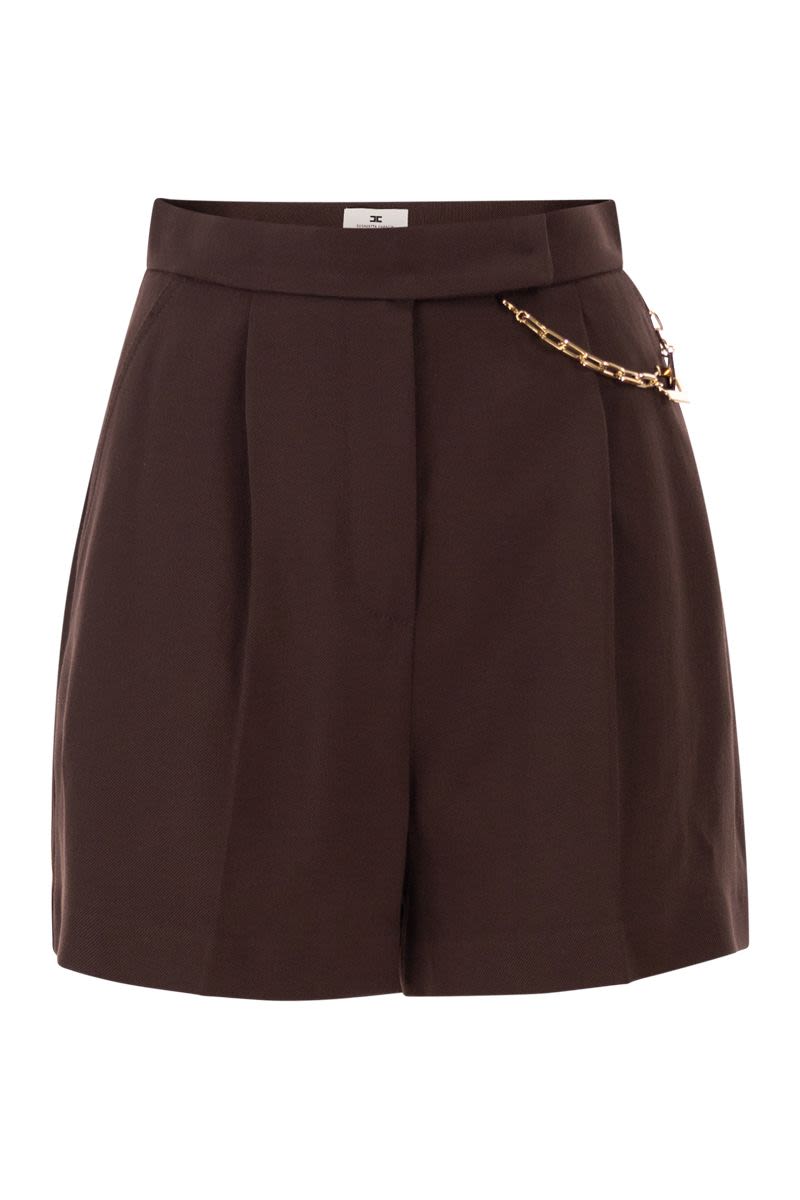 GABARDINE SHORTS WITH FRENCH POCKETS AND PIPING ON THE BACK. THEY ARE EMBELLISHED WITH A JEWELLED DETAIL FEATURING A CHAIN WITH A GOLD METAL LOGO, SHINING ON ONE SIDE. - REGULAR FIT - GOLD METAL ACCESSORY WITH LOGO - FRENCH POCKETS - PIPING ON THE BACK - ZIP AND HOOK FASTENING DESIGNER ID: SH00561E2 644