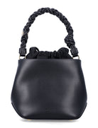 THE BLACK BOU BUCKET BAG BY GANNI PAIRS A STRUCTURED SILHOUETTE WITH REFINED BRAIDED DETAILS. FEATURING A KNOTTED TOP HANDLE, A REMOVABLE AND ADJUSTABLE STRAP, AND AN INNER DRAWSTRING POUCH, IT BLENDS FUNCTIONALITY WITH SIGNATURE STYLING.