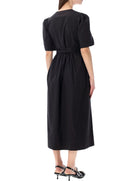 GANNI BLACK COTTON MIDI DRESS