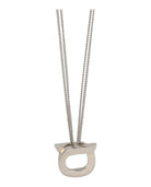 Elevate your everyday style with the Ferragamo Ganpop Necklace, a sophisticated piece that embodies Italian luxury craftsmanship. This elegant pendant necklace features silver-tone brass construction with the iconic Ferragamo logo detail drop, suspended from a delicate chain.