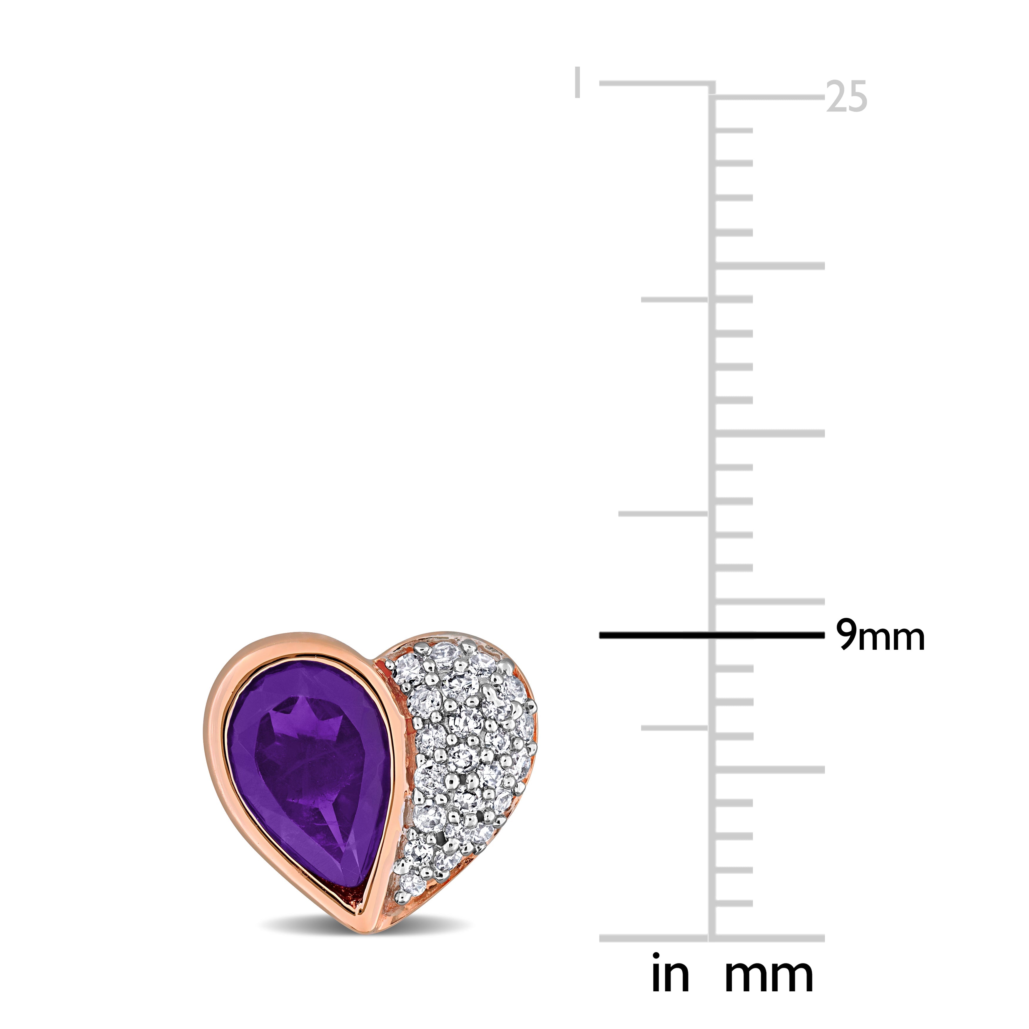 Gemstone and Diamond Heart Stud Earrings in 10k Gold