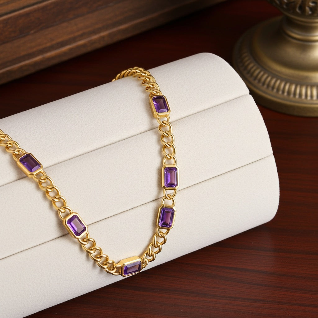 Gemstone Birthstone Curb Link Necklace in 14k Yellow Gold