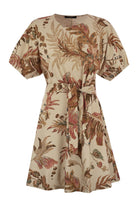 PRINTED COTTON DRESS, T-SHIRT MODEL WITH A STRAIGHT LINE AND MATCHING BELT THAT TRIMS THE WAIST. - ROUND NECK - SHORT ROUND SLEEVES - UNLINED DESIGNER ID: 2525626081600 005