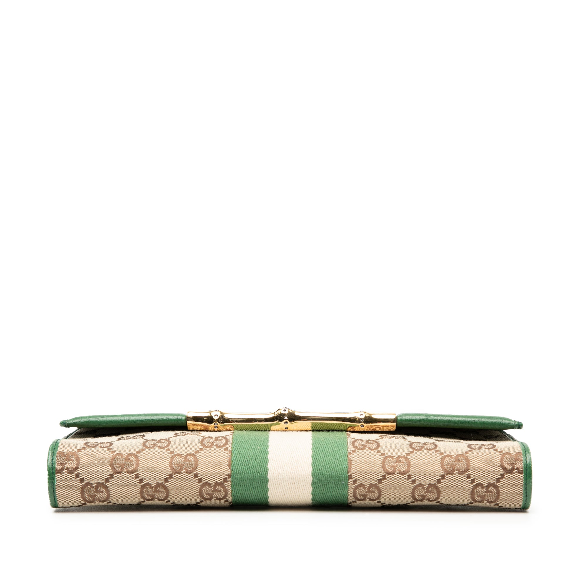 The Gucci GG Canvas Web Bamboo Bar Crossbody is a timeless accessory that embodies the Italian house's signature craftsmanship and iconic design elements. This elegant crossbody features the classic GG canvas adorned with the distinctive green and red web stripe, complemented by luxurious leather trim and the signature bamboo bar detail that Gucci is renowned for. The practical design includes a flat leather strap for comfortable wear, a secure flap closure with magnetic snap, and an interior slip pocket to keep your essentials organized. Perfect for day-to-night styling, this versatile crossbody effortlessly transitions from casual outings to evening affairs. Whether you're exploring the city or enjoying a night out, this pre-owned Gucci piece adds an unmistakable touch of luxury to any ensemble.