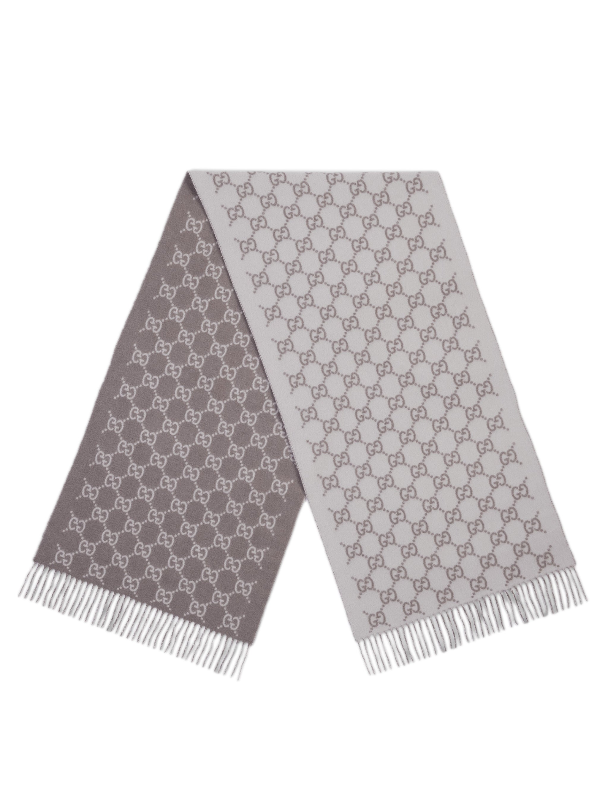 GREY GG CASHMERE FINISHES WITH FRINGES DIMENSIONS: L 190 CM X H 45 CM 100% CASHMERE MADE IN ITALY