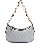 Elevate your everyday style with this stunning Gucci GG Emblem shoulder bag. Featuring the iconic GG monogram pattern in a sophisticated light gray colorway, this elegant piece showcases Gucci's timeless craftsmanship and luxury design.