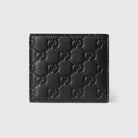 BLACK LEATHER WALLET WITH EMBOSSED GG PATTERN. IT FEATURES EIGHT CARD SLOTS, TWO BILL COMPARTMENTS, AND TWO EXTRA SLOTS. ANY IMPERFECTIONS IN THE LEATHER ARE NOT CONSIDERED MANUFACTURING DEFECTS, BUT A CHARACTERISTIC OF THE MATERIAL.