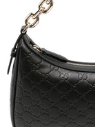 GG EMBLEM LARGE SHOULDER BAG IN BLACK EMBOSSED GG LEATHER WITH CHAIN SHOULDER STRAP AND ZIP CLOSURE; SPACIOUS SILHOUETTE MADE IN ITALY.