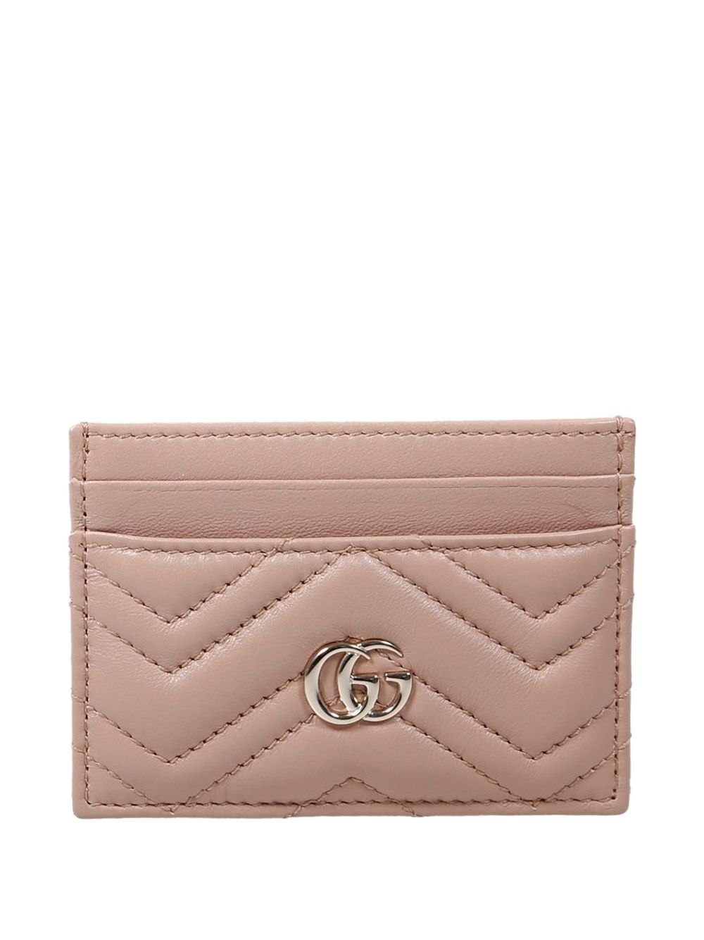 Elevate your everyday essentials with the GG Marmont Card Case from Gucci. This luxurious accessory features the iconic matelassé chevron quilted leather in a sophisticated nude-pink hue, accented by the signature double G hardware in antique gold-tone finish.