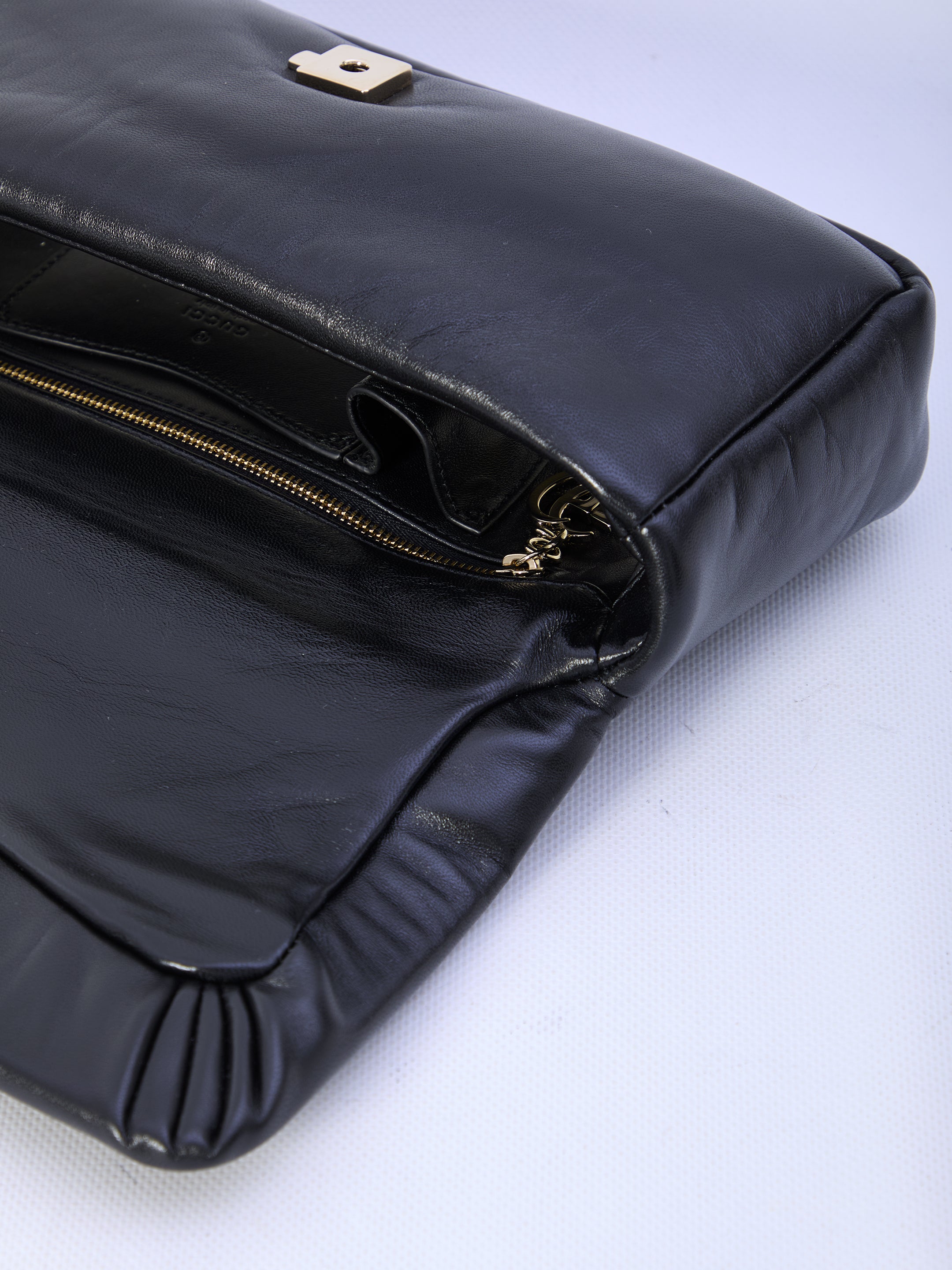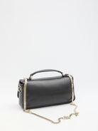 GG Milano small top handle bag in black padded leather with light gold-tone hardware. It features Double G on the front, top handle, detachable chain shoulder strap, spring closure, one main interior compartment, one interior zip pocket and one interior card slot. Black leather lining. Dust bag included. Any leather imperfections are not to be considered manufacturing defects, but a peculiarity of the material. The appearance of wrinkles can be attributed to the softness of the leather, and is characteristic of the material.