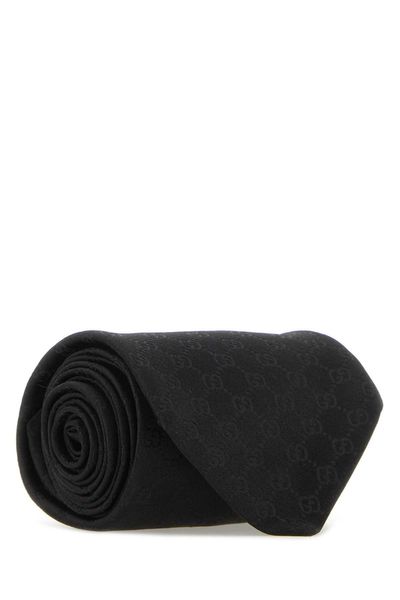 BLACK SILK TIE WITH TONAL DOUBLE G MOTIF. POINTED DESIGN.