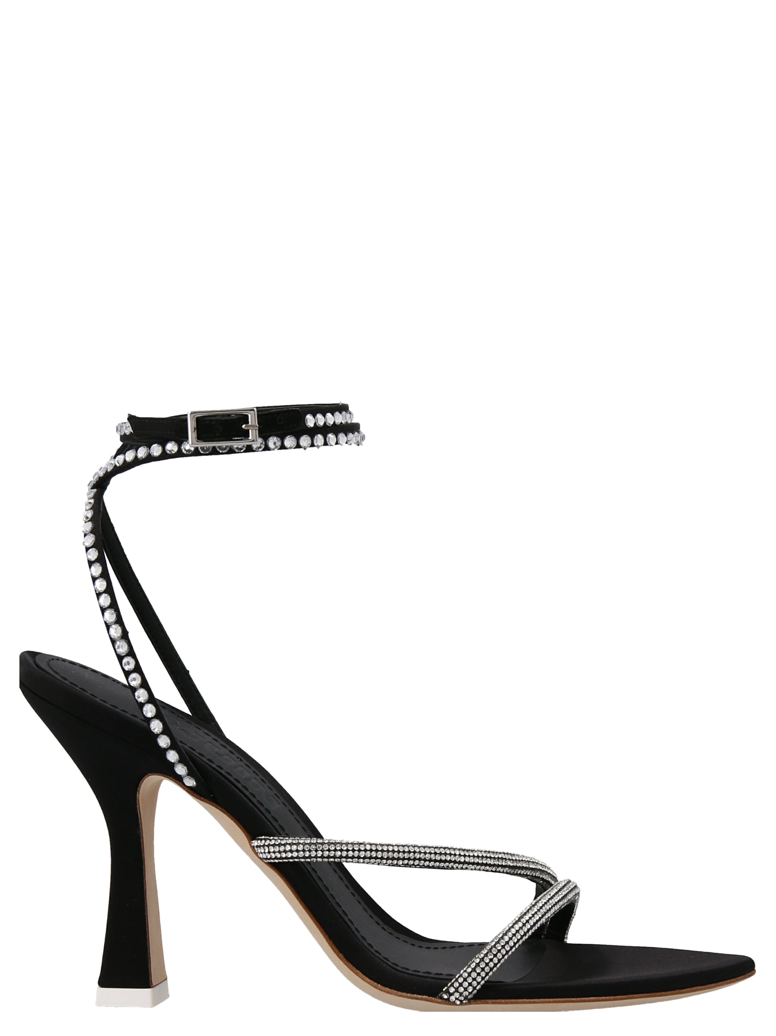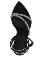 Elevate your evening wardrobe with the stunning 'Giglio' sandals from 3JUIN. These luxurious satin sandals feature exquisite crystal embellishments that catch the light with every step, while the double-row ankle strap provides both security and sophisticated style.