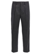 Elevate your professional wardrobe with the 'Gin' wool blend trousers from Department 5. These impeccably tailored dress pants feature a sophisticated charcoal hue and classic ironed pleats that create a refined, polished silhouette.
