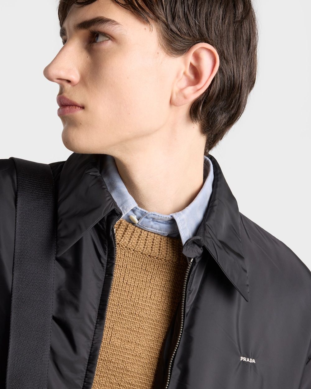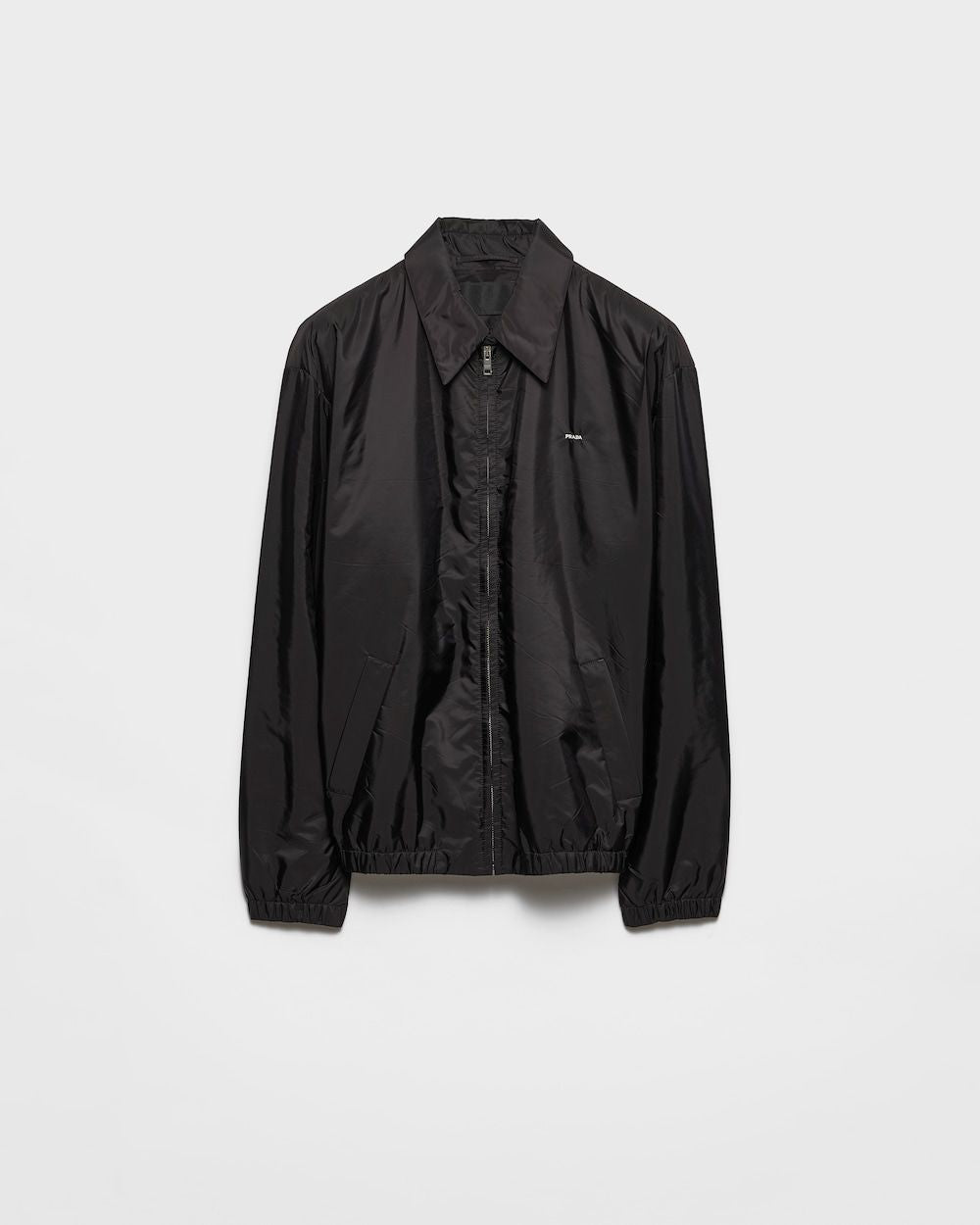 Elevate your outerwear collection with this sleek GIUBBOTTI jacket from Prada. Crafted from premium lightweight nylon, this versatile piece features a classic collared design with a full front zip closure and practical side pockets.