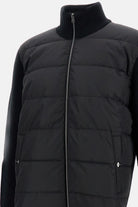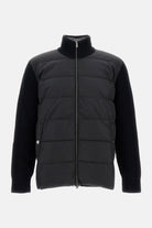 Featuring a sleek black quilted body paired with knit sleeves, this versatile piece offers both warmth and style for the contemporary man. The full-zip front and stand-up collar provide practical protection against the elements, while the hybrid construction allows for comfortable movement.