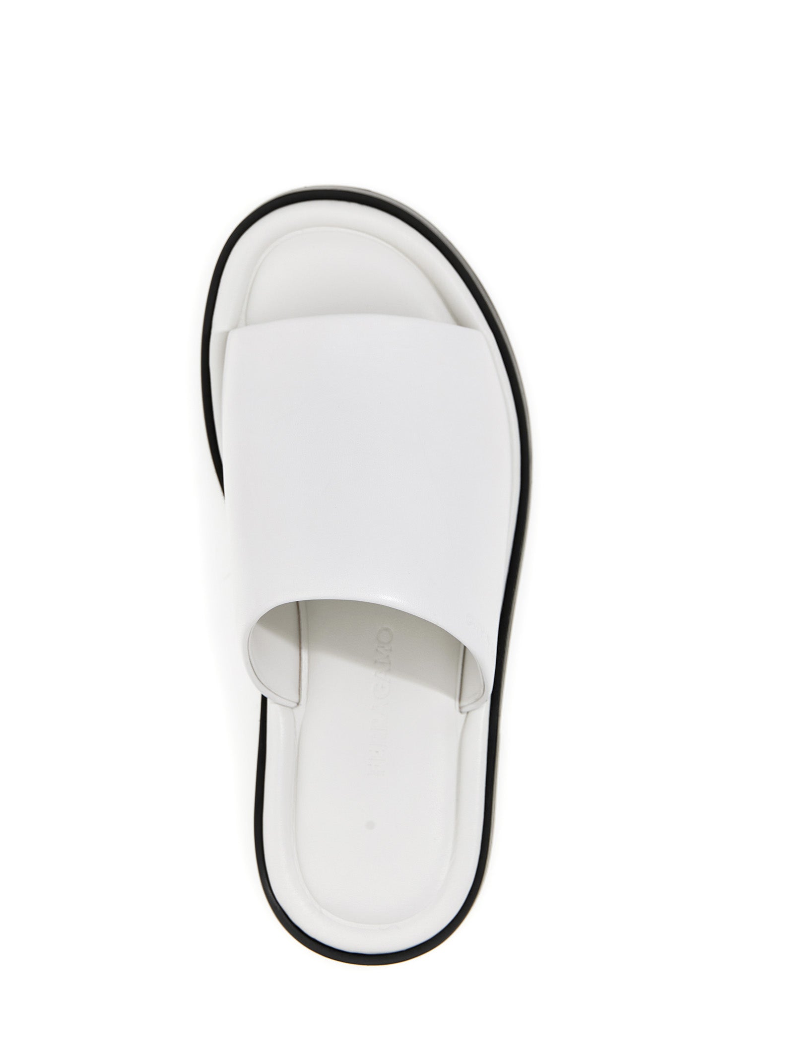 These sophisticated slide sandals feature a single rounded leather band that creates a clean, contemporary silhouette. Set atop a sleek contrasting sole, they offer effortless style and all-day comfort.