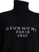Givenchy Paris 1952" Givenchy turtleneck sweater, made from a blend of wool and cashmere, features a compact structure with a straight silhouette. The high collar, along with ribbed hem and cuffs, provides stability and definition to the architecture of the garment. The surface maintains a uniform texture, with the Givenchy Paris 1952 text insert placed frontally on the knit.
