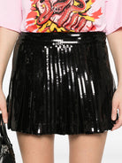 The sophisticated black color and luxurious construction make this skirt a timeless addition to any fashion-forward wardrobe.