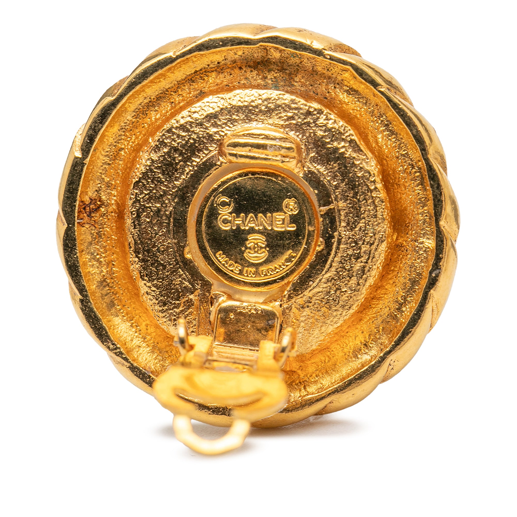Gold Plated Faux Pearl Round Button Clip On Earrings