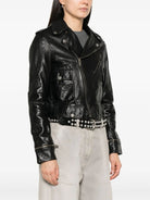 Introducing the Golden Goose Nevada Chiodo Jacket, a timeless moto-inspired piece crafted from luxurious 100% ovine leather with a distinctive waxed finish. This iconic jacket features the classic chiodo silhouette with its signature asymmetric zip, creating an effortlessly cool aesthetic that transcends seasons.