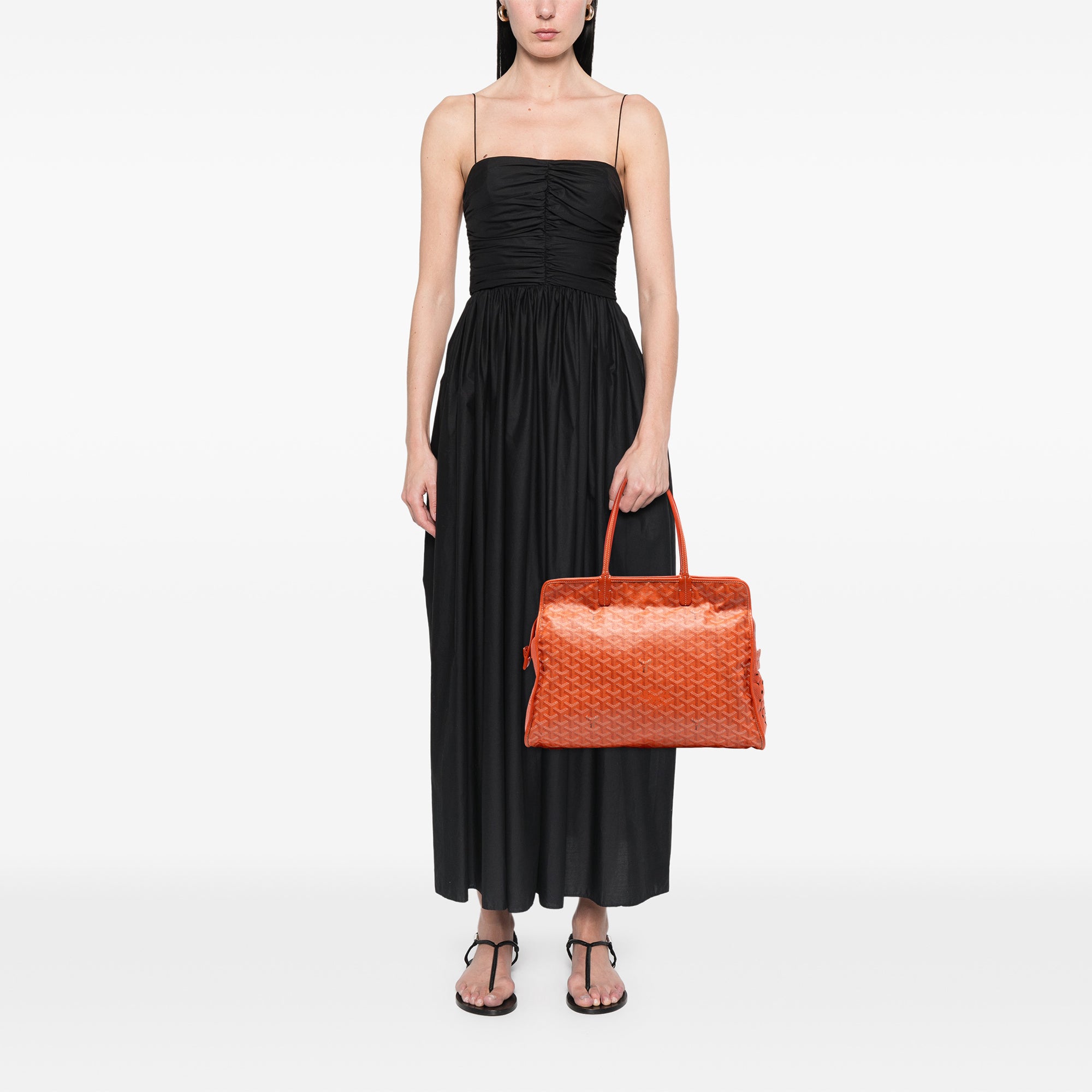 Perfect for the discerning pet owner who refuses to compromise on style, this piece seamlessly transitions from city streets to weekend getaways. The structured silhouette and signature Goyard pattern make a sophisticated statement while ensuring your pet travels in comfort and luxury.
