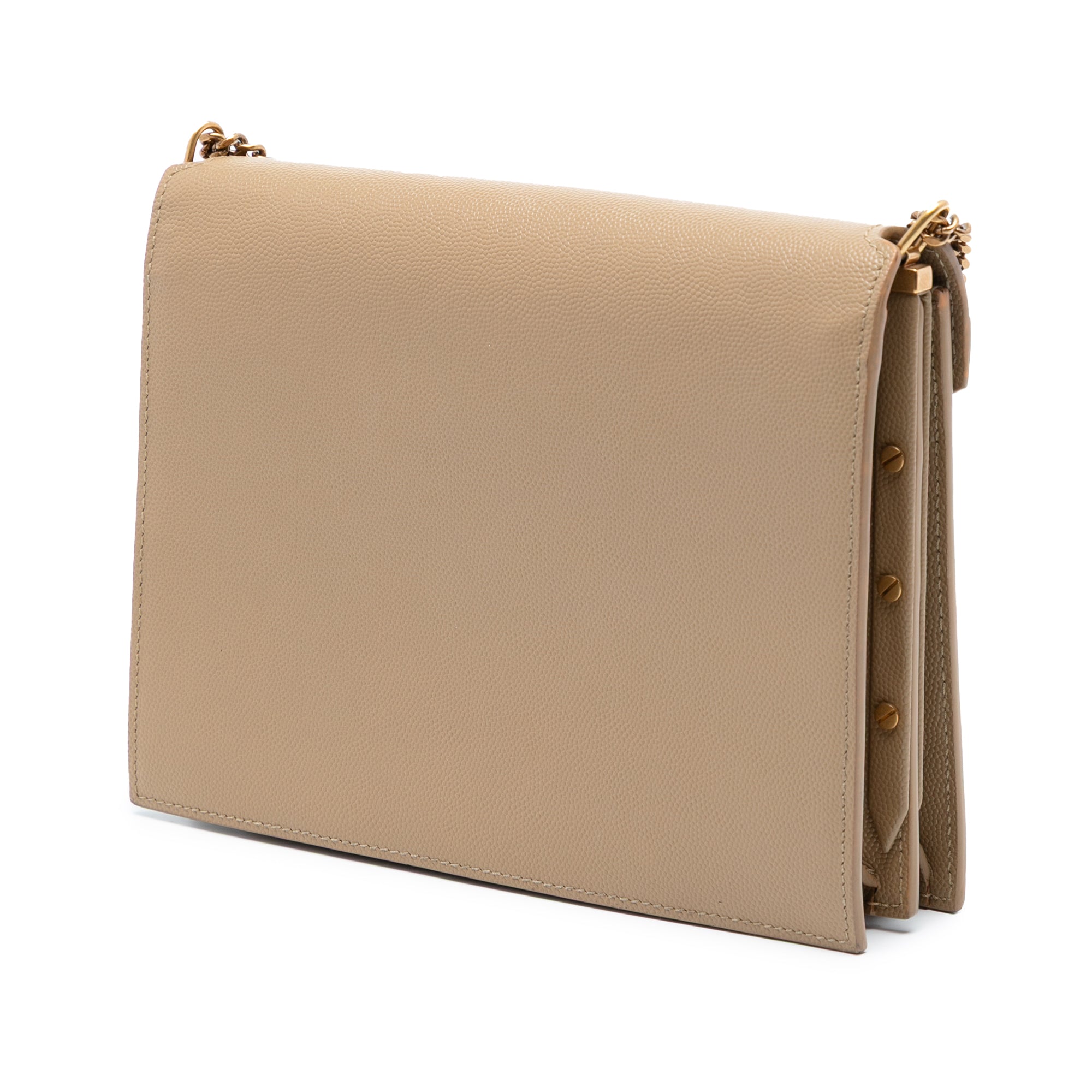 The Saint Laurent Grain De Poudre Monogram Cassandra Chain Wallet is the epitome of luxury and versatility. Crafted from supple leather with the iconic YSL monogram hardware, this sophisticated piece features a detachable chain link shoulder strap that allows you to wear it as a chic crossbody or elegant clutch.