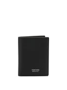 TOM FORD GRAIN LEATHER FOLDING CARD CASE. MADE OF SOFT, NATURAL-GRAIN LEATHER, IT FEATURES A COMPACT STRUCTURE WITH A FOLD-OVER OPENING. THE INTERIOR IS ORGANIZED IN A MINIMALIST FASHION, WITH SIX LINEAR SLOTS DESIGNED FOR PAYMENT CARDS OR DOCUMENTS. THE SILHOUETTE IS FLAT, DEVOID OF DECORATIVE ELEMENTS. THE ASSEMBLY USES TONE-ON-TONE STITCHING AT THE EDGES AND FOLDED REINFORCEMENTS AT THE EDGES.