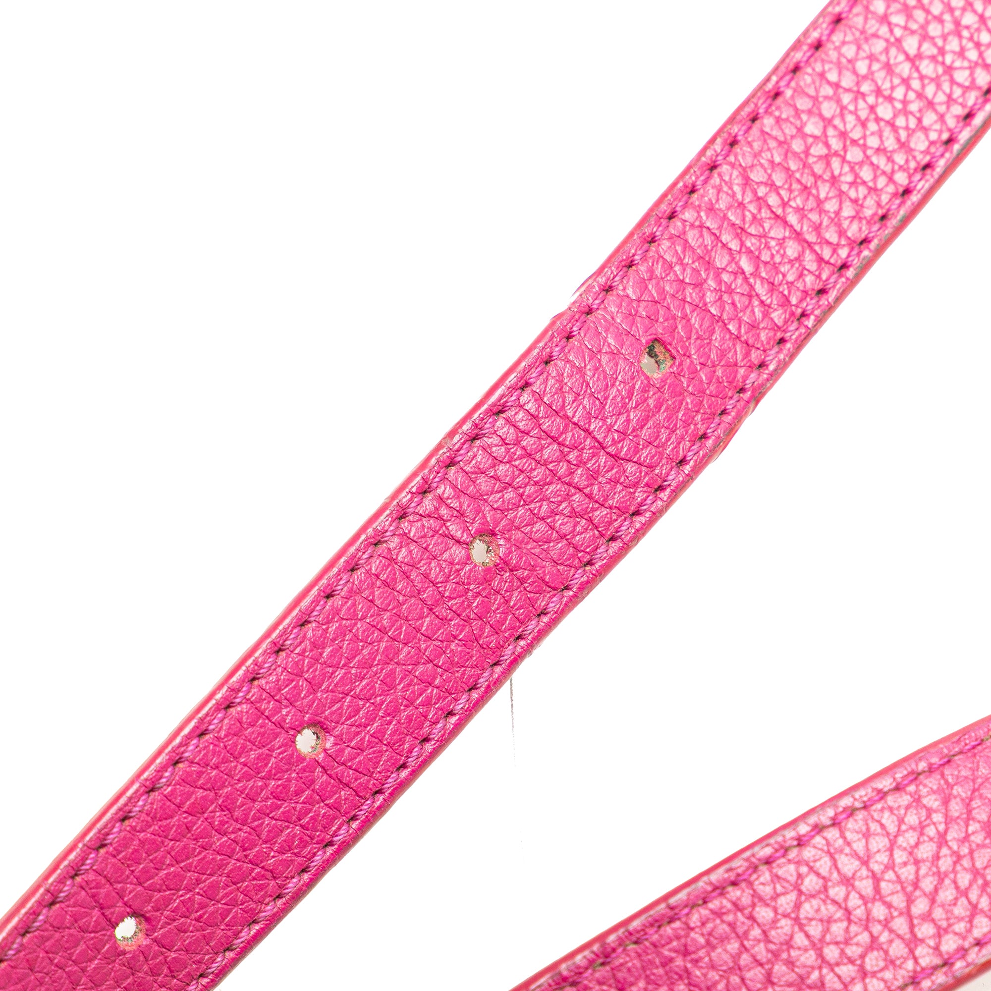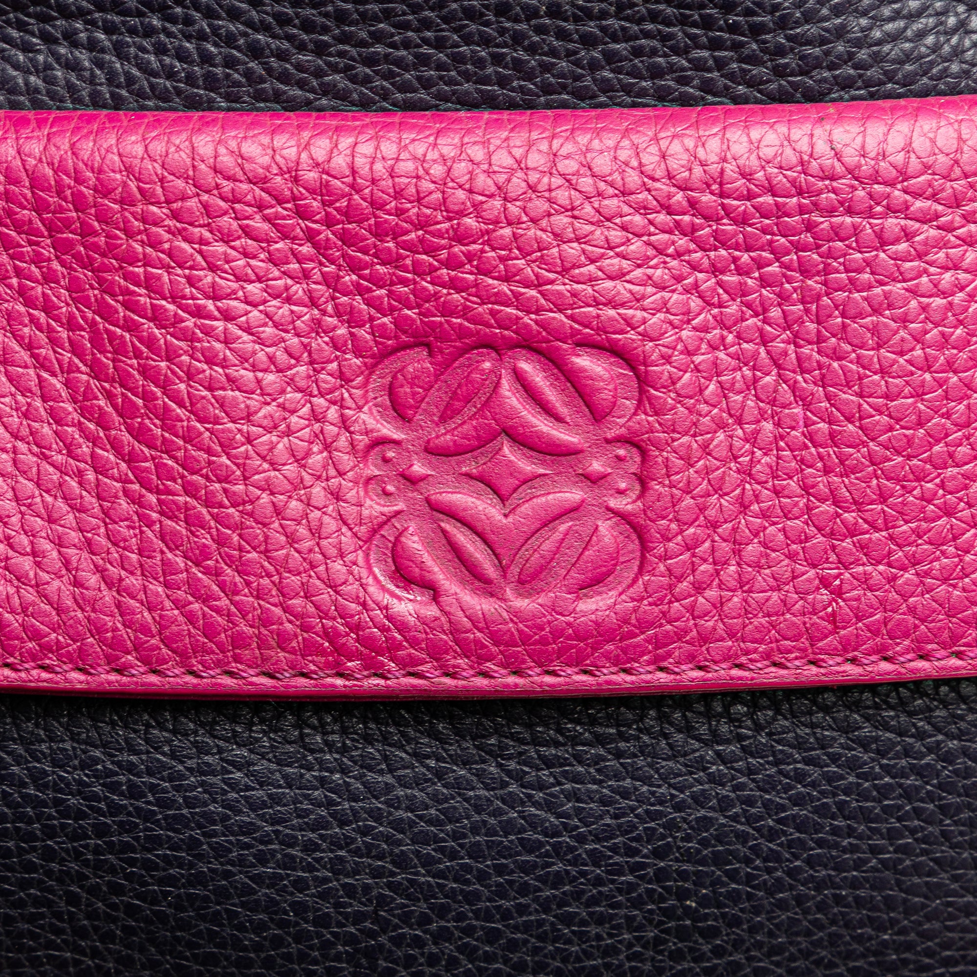 Elevate your everyday style with this stunning LOEWE Cruz Satchel in grained bicolor calfskin. This sophisticated bag features a striking pink and navy color combination that adds a bold pop of color to any outfit.