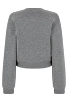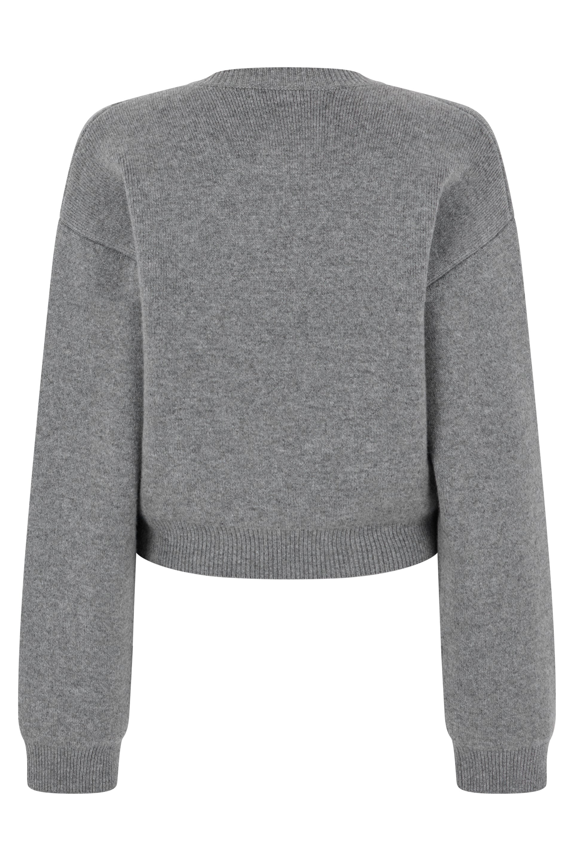THIS SWEATER FEATURES A CROPPED DESIGN, MADE FROM A SOFT GRAY MELANGE FABRIC WITH A SMALL CONTRASTING BLUE LOGO. IT HAS A ROUND NECKLINE AND LONG SLEEVES, GIVING IT A CASUAL AND VERSATILE LOOK. PERFECT FOR COMBINATIONS UNDER THE BANNER OF COMFORT AND STYLE. IDEAL FOR YOUR SPRING OR AUTUMN WARDROBE.