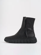 Elevate your everyday style with the Great Hero Leather Ankle Boot from PURO. This sleek black leather bootie features a modern silhouette with a convenient side zipper closure and a distinctive chunky platform sole that adds both comfort and contemporary edge.