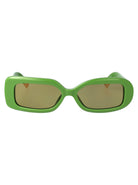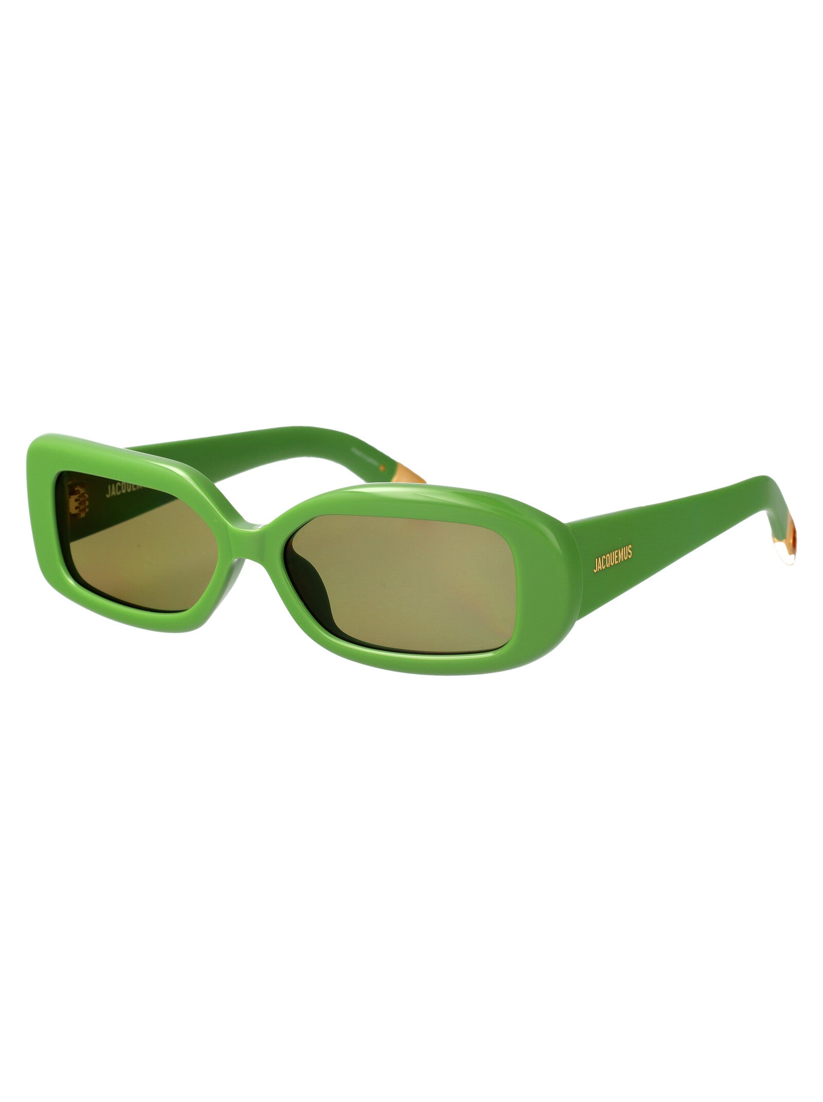 These striking green acetate sunglasses from Jacquemus feature a bold square frame design that makes a contemporary fashion statement. The vibrant green hue adds a pop of color to any outfit, while the structured geometric silhouette offers both style and sun protection.