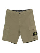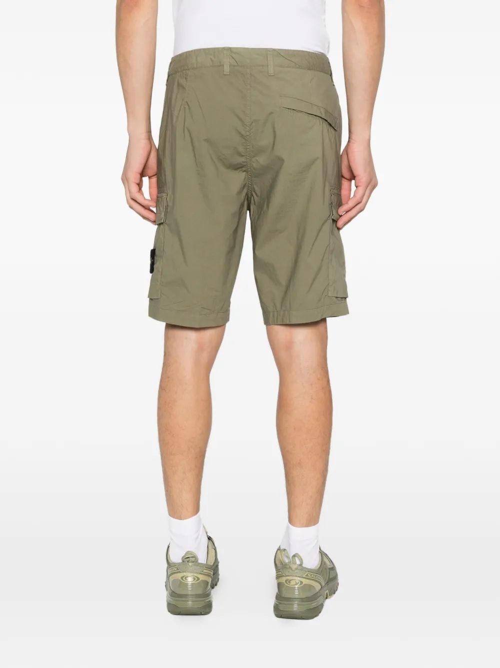 Elevate your warm-weather wardrobe with these exceptional cargo shorts from Stone Island. Crafted in a versatile olive green tone, these shorts feature the brand's signature utilitarian design with functional cargo pockets and the iconic compass badge detail.