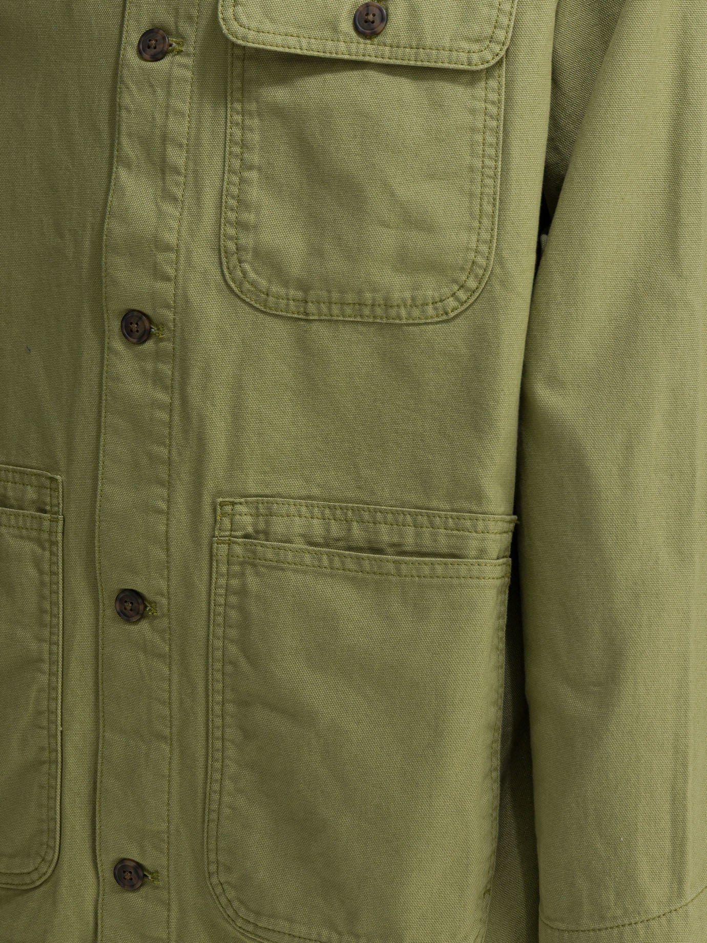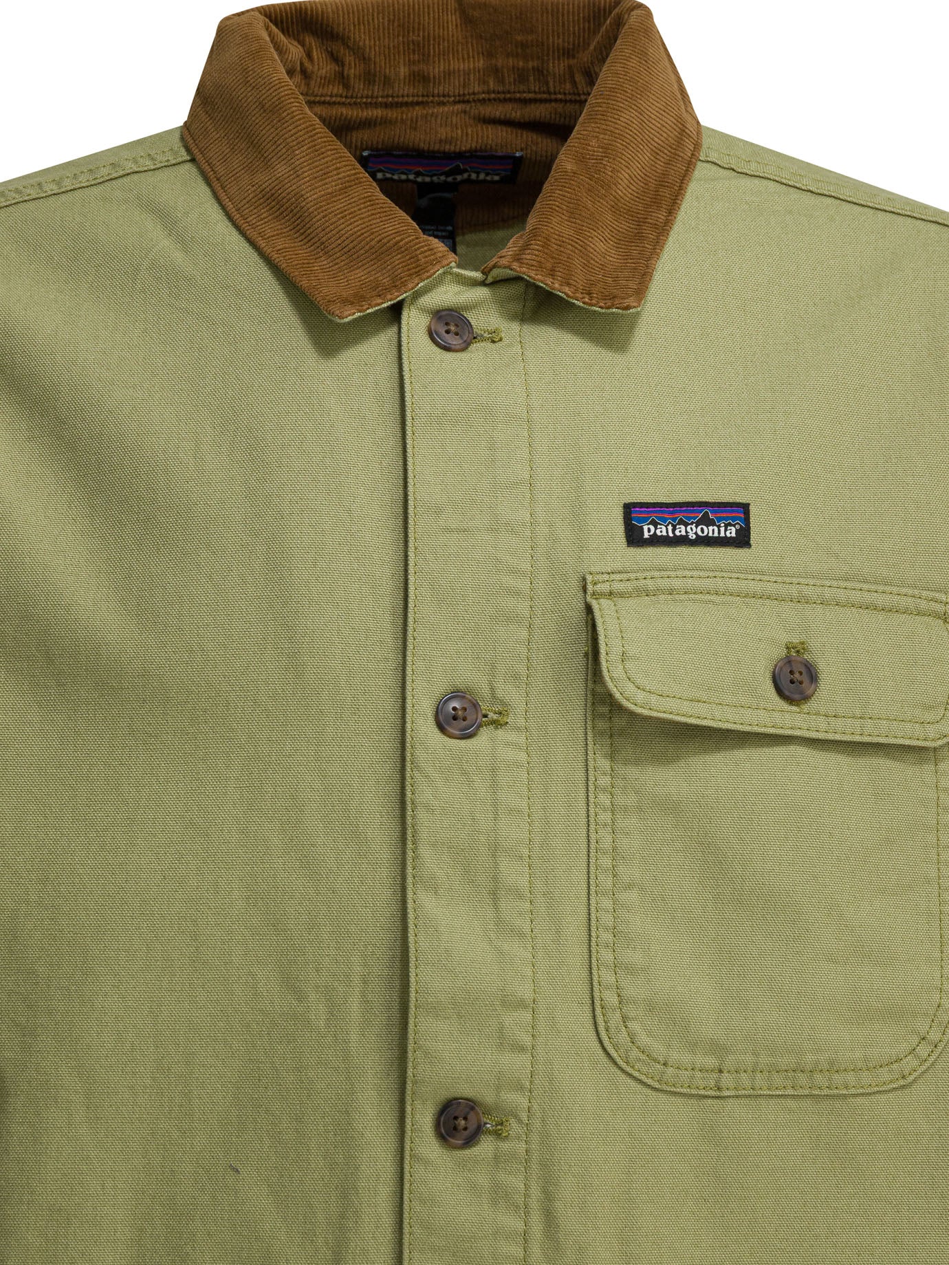 Elevate your everyday outerwear with this versatile organic cotton jacket from Patagonia. Crafted from sustainable organic cotton in a rich olive green hue, this utility-inspired jacket features a distinctive contrast corduroy collar and classic button-front closure.