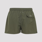 Elevate your swimwear collection with these luxurious swim shorts from Kiton. Crafted from military green tech fabric, these shorts feature an elastic waistband with drawcord for the perfect fit, along with a distinctive metal and enameled red logo detail on the front.