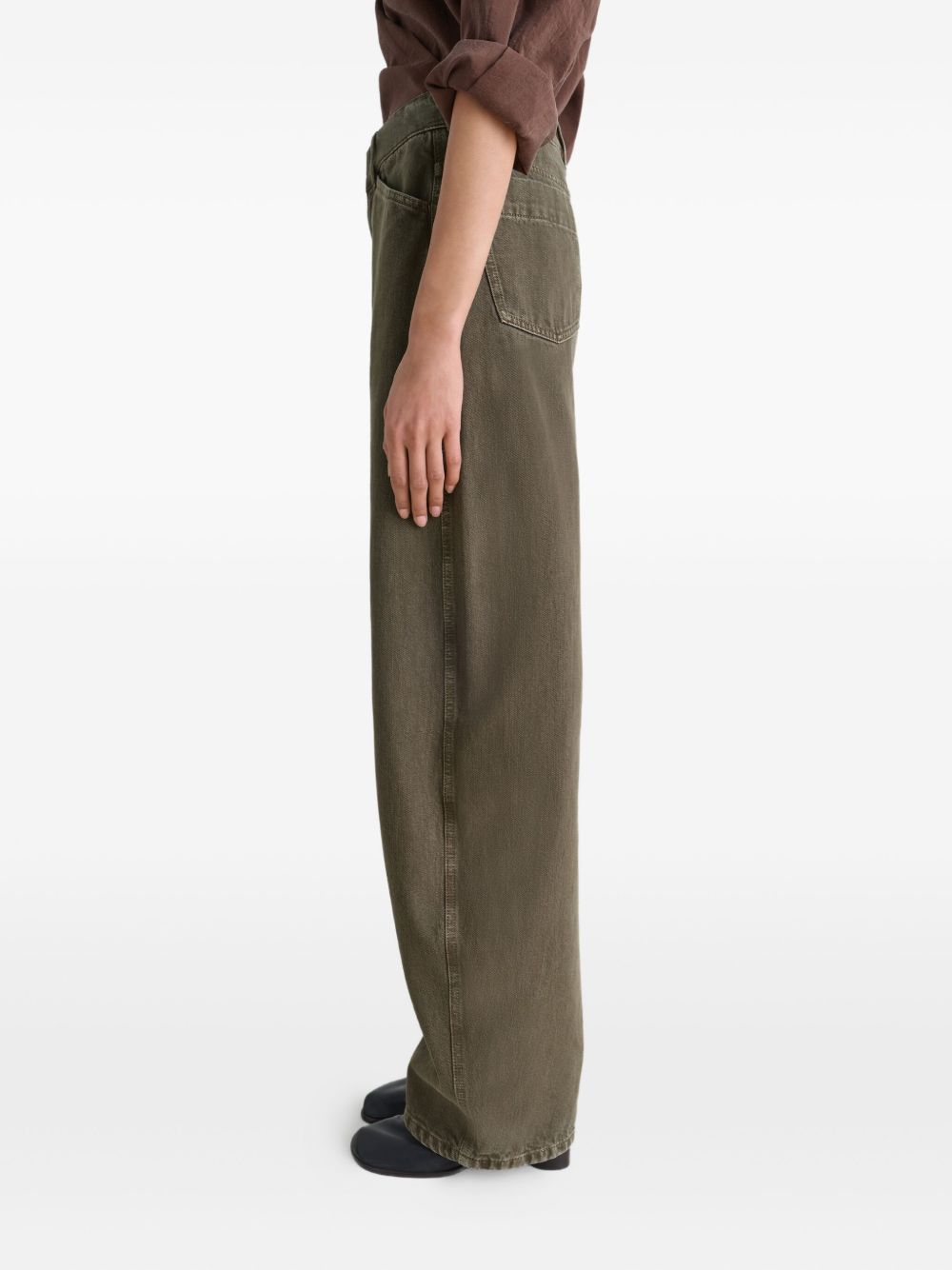 Elevate your denim collection with these sophisticated Lemaire high-waist jean pants in a distinctive greenish grey wash.