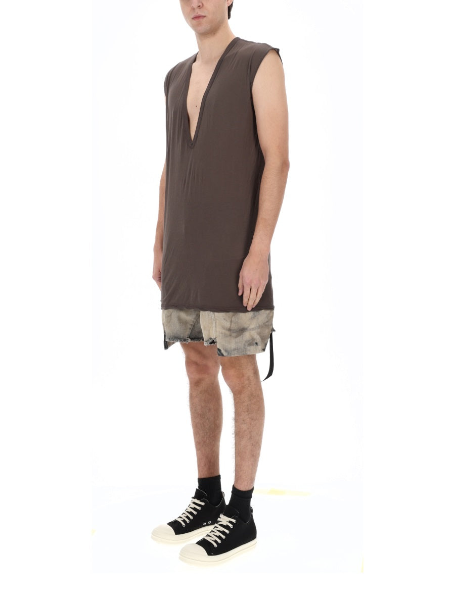 Elevate your off-duty wardrobe with this distinctive grey cotton t-shirt from DRKSHDW, Rick Owens' avant-garde diffusion line. Crafted from 100% premium Italian cotton, this sleeveless design features an elongated silhouette and deep V-neckline that embodies the brand's signature deconstructed aesthetic.