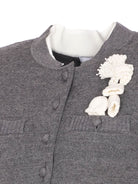 GREY CROCHET FLOWER EMBELLISHMENT BUTTON CLOSURE CREW NECK LONG SLEEVES WELT POCKETS