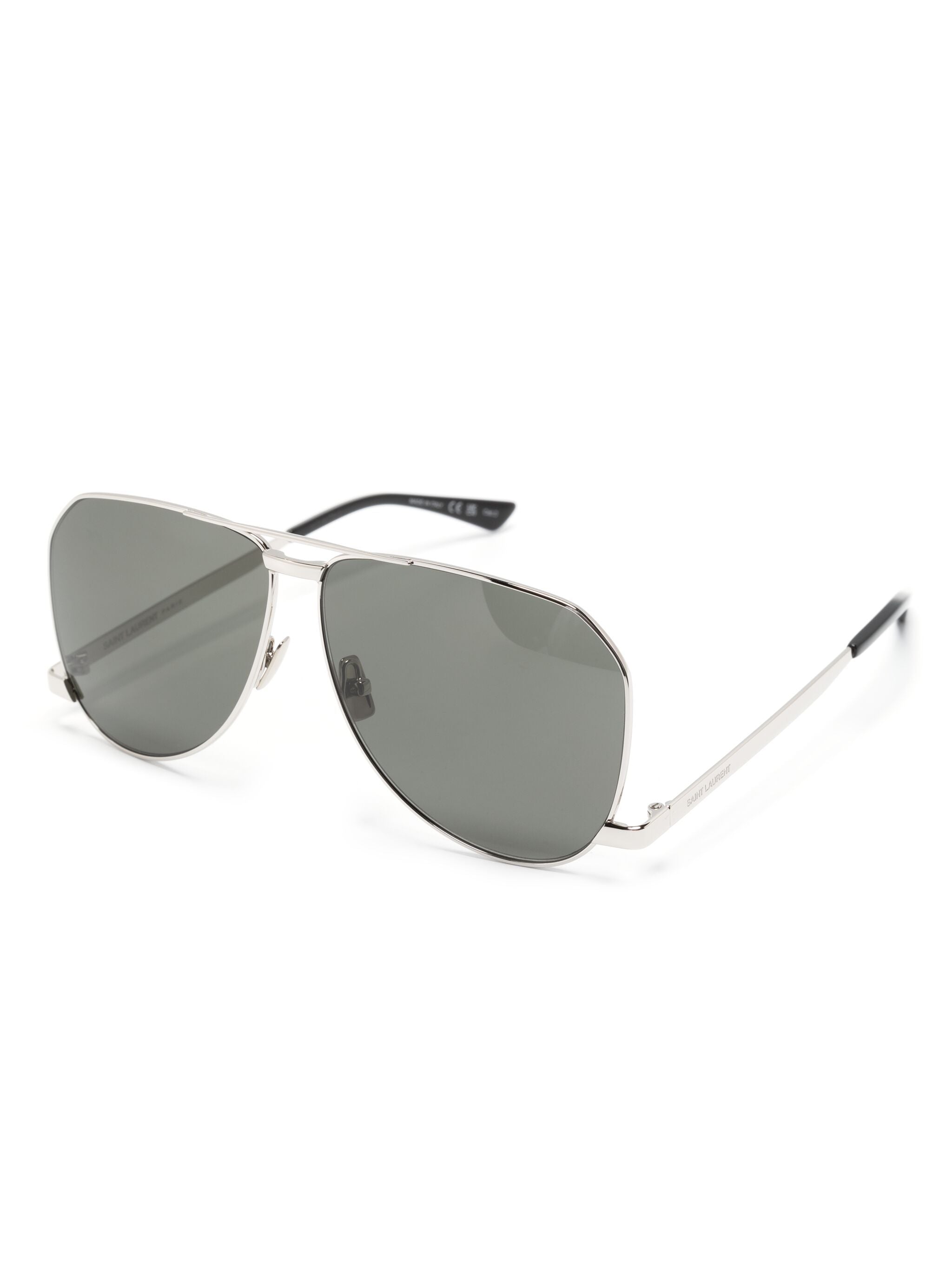 SAINT LAURENT PRESENTS THESE SUNGLASSES WITH METAL AVIATOR FRAMES, NYLON LENSES, DOUBLE BRIDGE AND LOW TEMPLES.