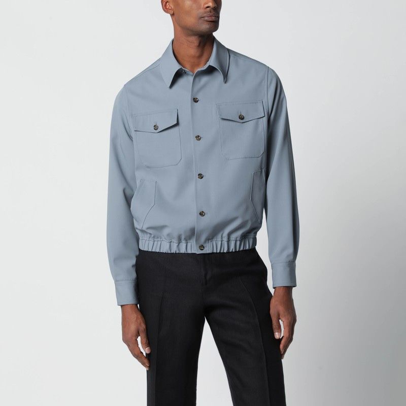 Elevate your transitional wardrobe with this sophisticated grey wool shirt jacket from Lardini. Crafted from premium virgin wool, this versatile piece seamlessly bridges the gap between a classic shirt and a lightweight jacket.