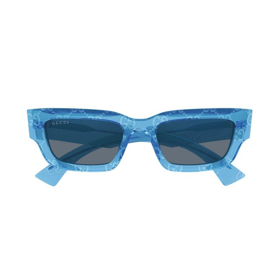 Make a bold statement with the Gucci GG1838S 010 sunglasses, featuring a striking light-blue translucent frame paired with complementary blue lenses. These square-shaped sunglasses embody contemporary luxury with their modern silhouette and eye-catching color palette.