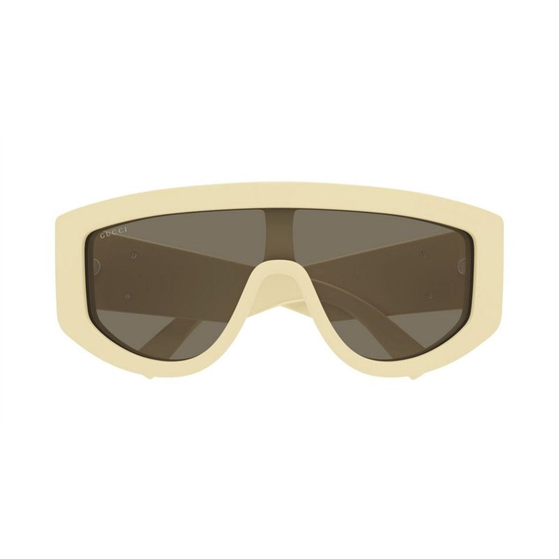 Elevate your eyewear collection with the Gucci GG1950S 004 sunglasses, a stunning statement piece from the iconic Italian luxury house. These shield-style sunglasses feature a chic ivory frame paired with sophisticated brown lenses, creating a perfect balance of modern design and timeless elegance.