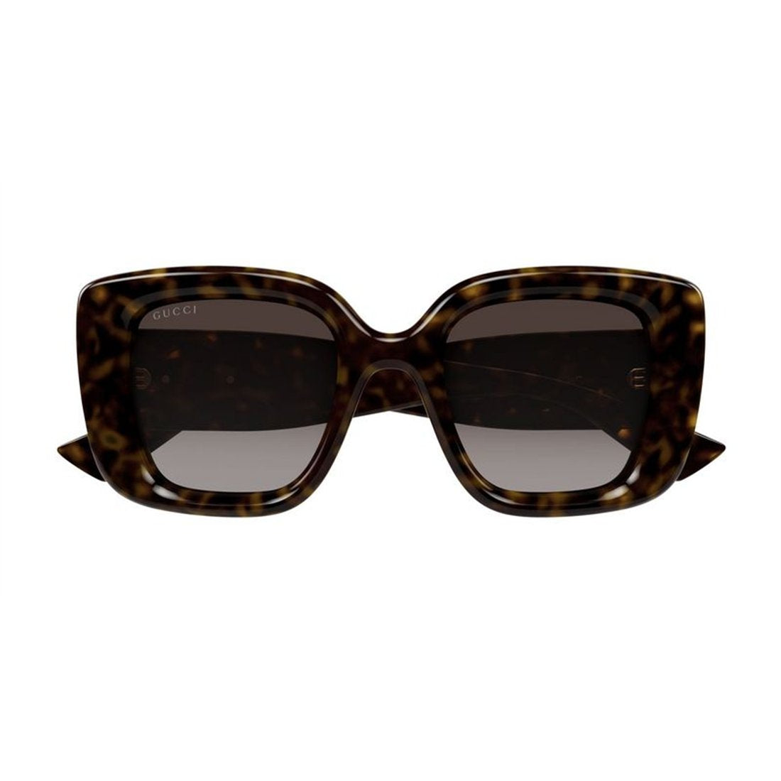 Make a bold statement with the Gucci GG1975S 003 sunglasses, featuring an oversized square silhouette in a luxurious havana tortoiseshell frame. The brown gradient lenses provide both style and sun protection, while the iconic gold-tone GG logo adorning the temples adds unmistakable designer appeal.