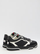 RE-WEB SNEAKERS IN BLACK ORIGINAL GG FABRIC WITH BLACK LEATHER, WHITE, AND BLACK SUEDE DETAILS. THEY FEATURE A TONGUE WITH WEB RIBBON, LACE-UP CLOSURE, GG CROSS DETAIL ON THE EYELETS, ROUND TOE, WEB TAG WITH GUCCI LOGO AND GG CROSS ON THE HEEL, AND A RUBBER SOLE WITH THE GG CROSS LOGO AND GUCCI INSCRIPTION. DUST BAG INCLUDED. ADDITIONAL LACES INCLUDED. ANY IMPERFECTIONS SHOULD NOT BE CONSIDERED MANUFACTURING DEFECTS BUT A CHARACTERISTIC OF THE MATERIAL.
