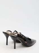 GUCCI SIGNORIA POINTED TOE PUMPS IN BLACK LEATHER. THEY FEATURE AN ELASTIC SLINGBACK CLOSURE WITH GOLD-TONED GUCCI CHAIN AND STILETTO HEEL. DUST BAG INCLUDED. ANY LEATHER IMPERFECTIONS ARE NOT TO BE CONSIDERED MANUFACTURING DEFECTS, BUT A PECULIARITY OF THE MATERIAL.