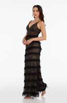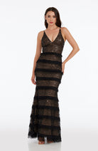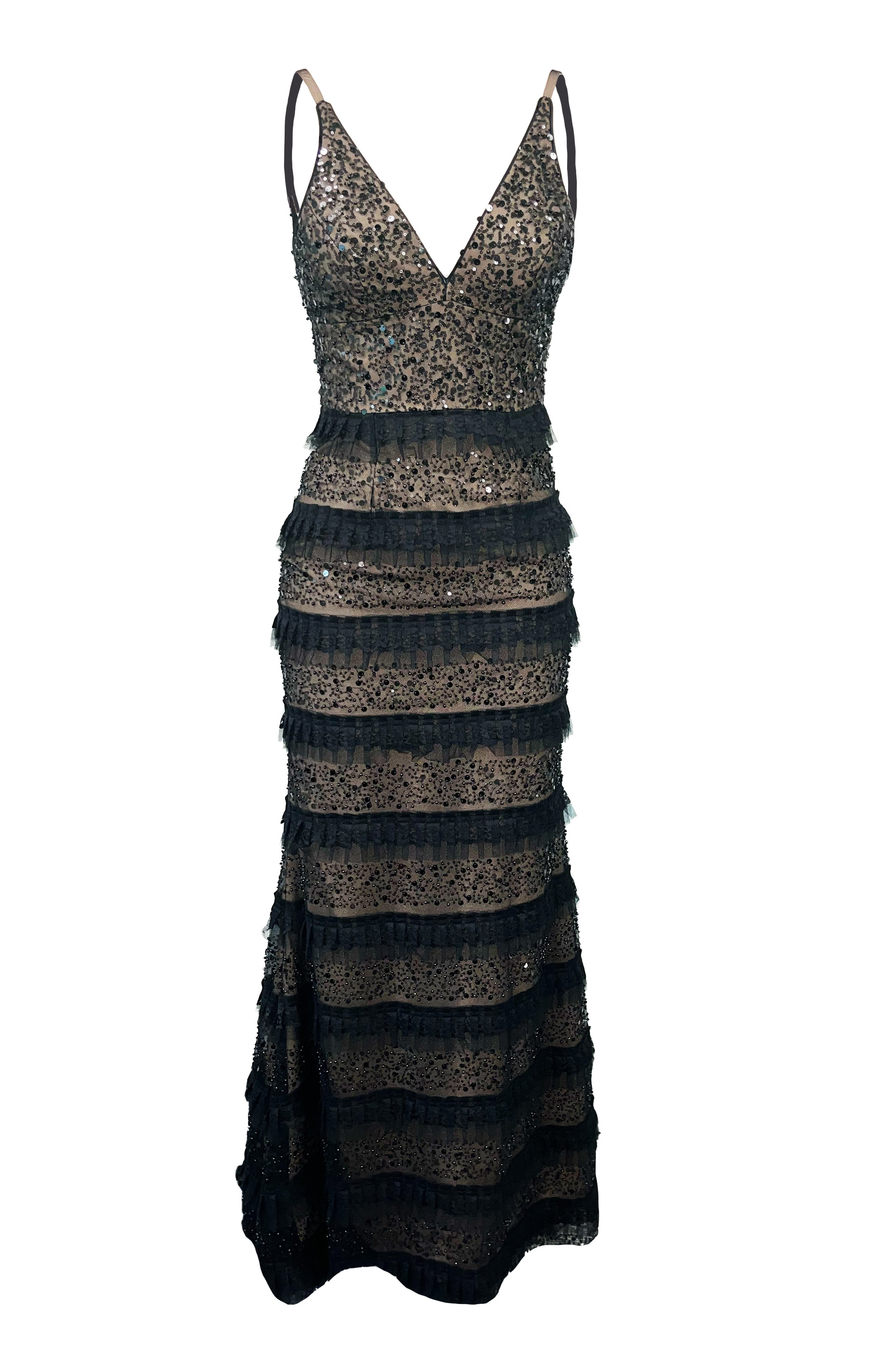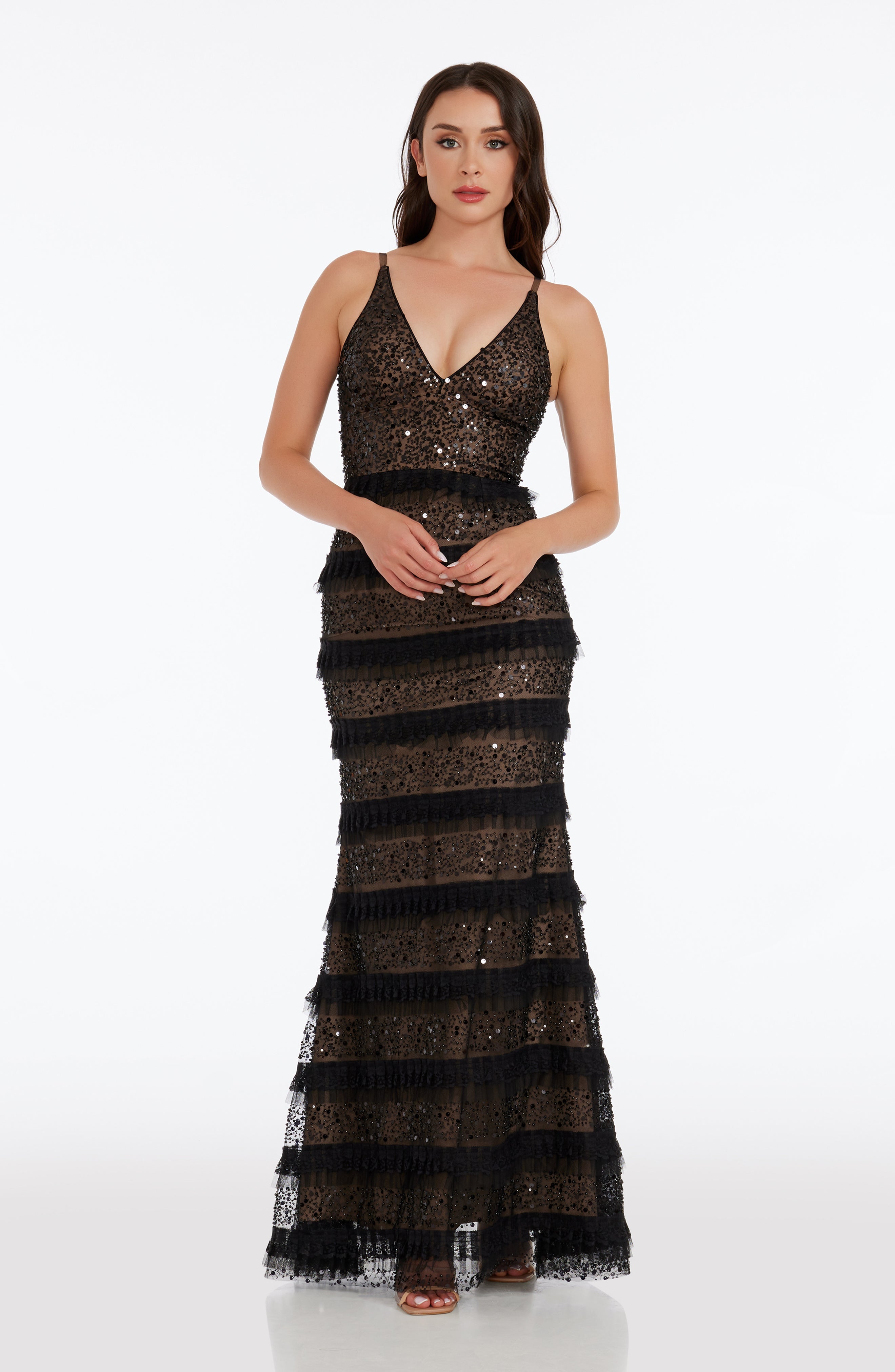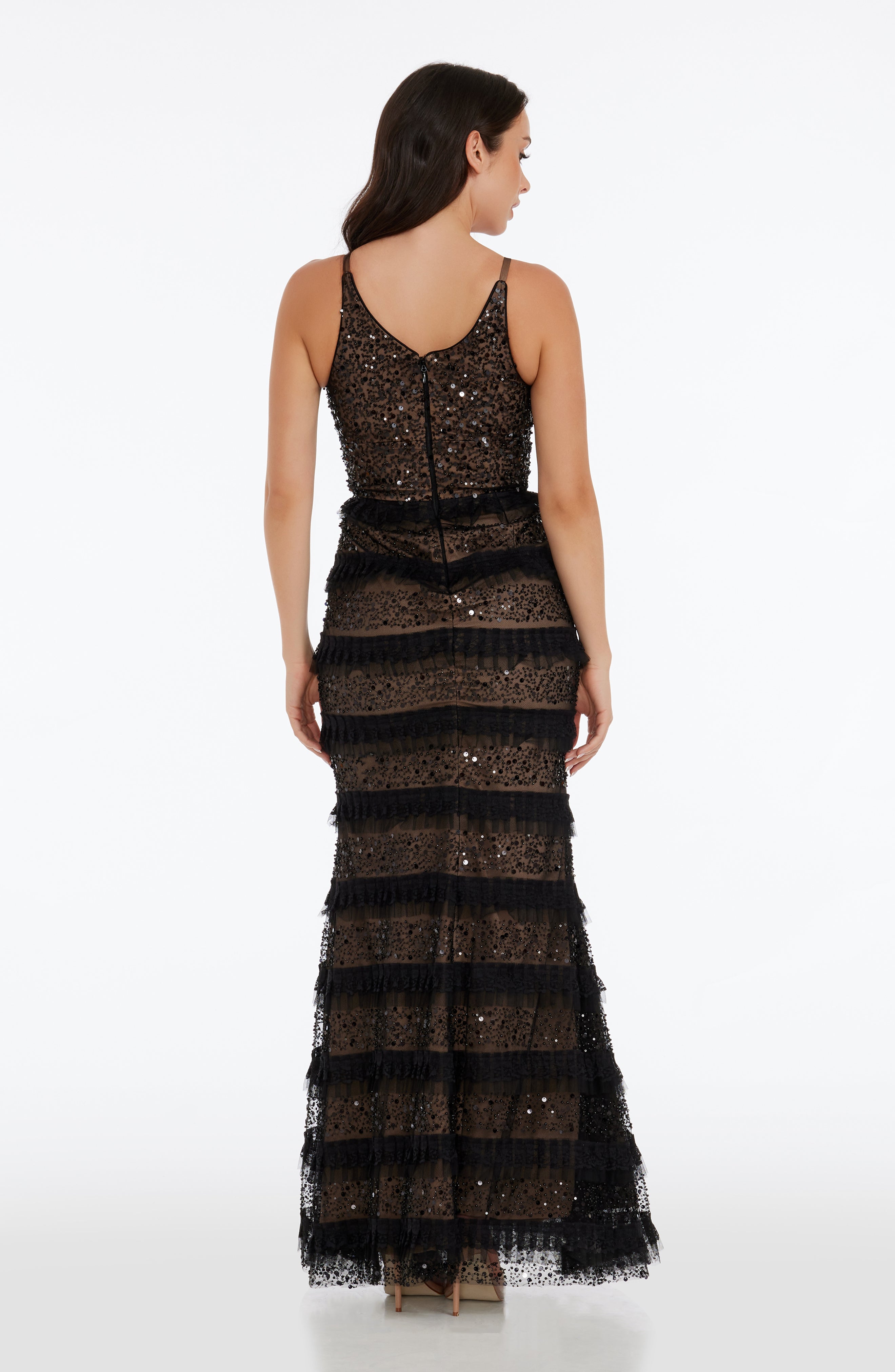 A Mermaid Gown with Plunging Neckline and Sleeveless Design