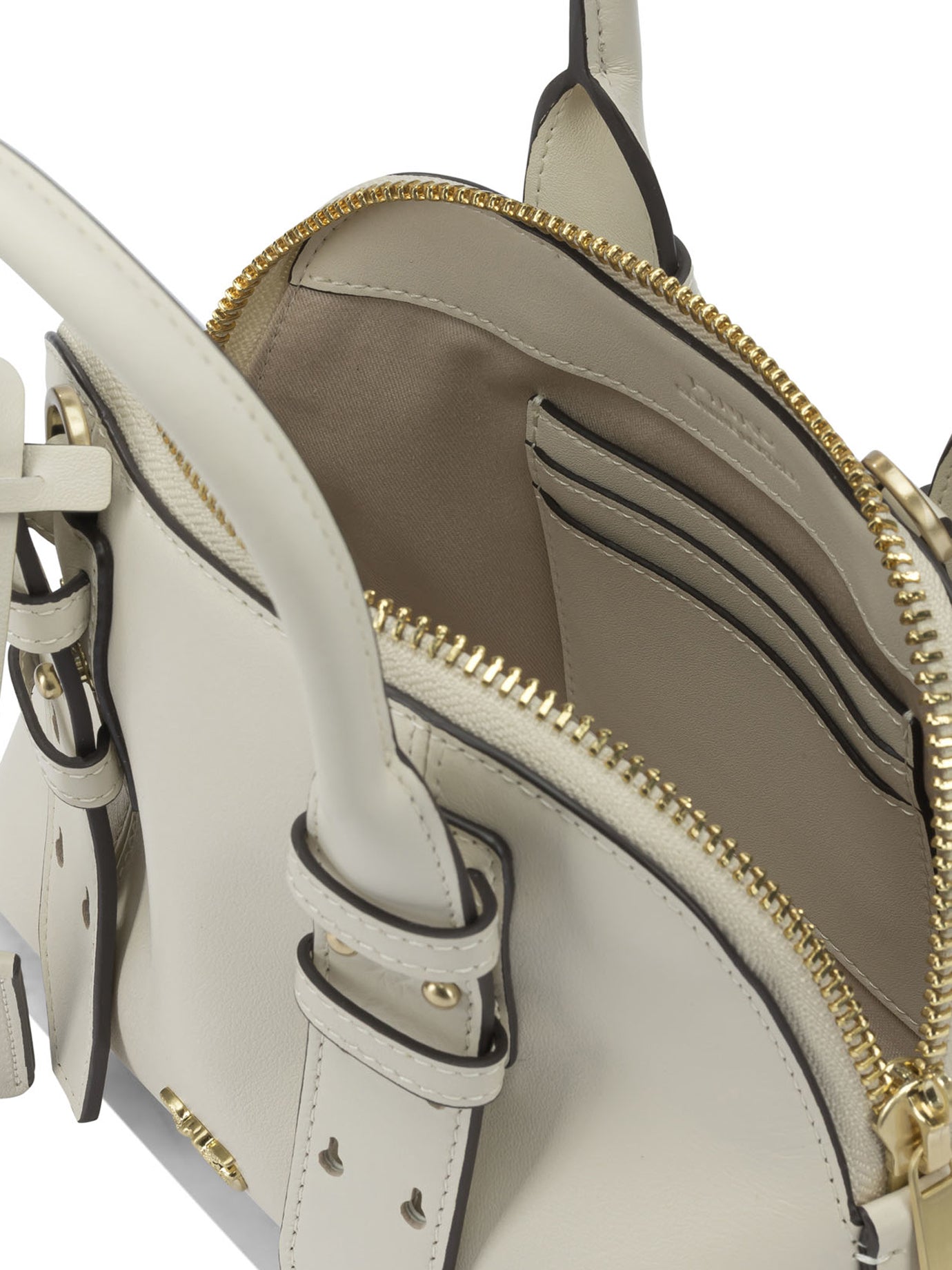 Elevate your everyday style with this sophisticated satchel from Pinko. Crafted in a timeless off-white hue, this structured handbag features elegant top handles, distinctive buckle detailing, and luxurious gold-tone hardware that adds a touch of refinement.