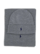 Crafted from premium ribbed knit fabric in a versatile gray tone, this coordinated duo features the iconic embroidered polo player logo for an unmistakable touch of heritage style. The classic beanie provides warmth and coverage while the matching scarf adds an extra layer of comfort and refinement.